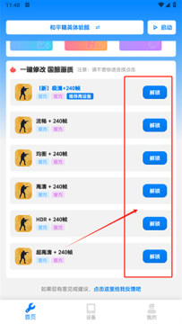 3、点击解锁,可以一键快速解锁各种画质选项