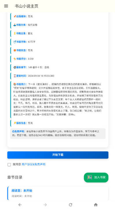 5、点击同意,选择开始下载或者点击章节开始阅读;