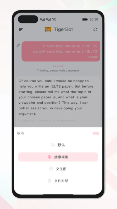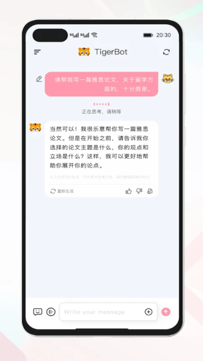 tigerbot虎博官方机器人app是一款国内打造ai聊天对话机器人,用户可以选择自己感兴趣的功能进行体验,你可以提出各种问答向机器人进行发问,极速回复你的问题,高效又便捷化,对软件感兴趣的话不妨点击下载试试!