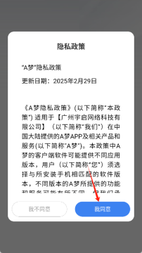 1、首先,您需要阅读并接受A梦AI的软件服务条款。