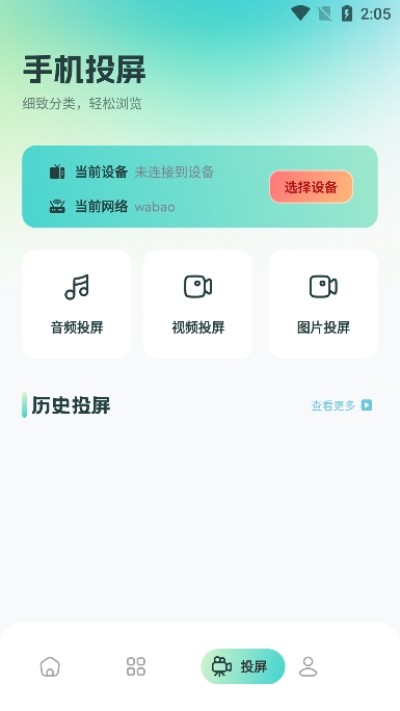4、最重要的是我们的软件支持音频、视频和图片的投屏功能,只需要连接设备就能快速投屏