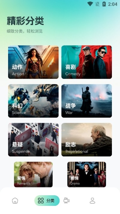 3、点击下的分类可以看到所有不同类型影片的介绍