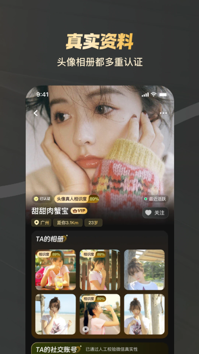 双重真人认证:“智能人脸识别+人工多次复核”双重认证,用户100%真实可靠,杜绝虚假信息