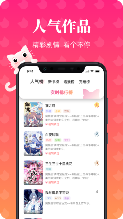 喵喵漫画提供高清全彩的漫画画质,每一页都细腻入微,色彩鲜艳,确保用户获得最佳的阅读体验。无论是细节丰富的画面,还是情感细腻的分镜,都能在这里得到完美呈现。