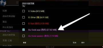 6.在内存范围列表中,滑动至底部并勾选“xa:codeapp”,其他选项保持未勾选状态,然后点击保存。