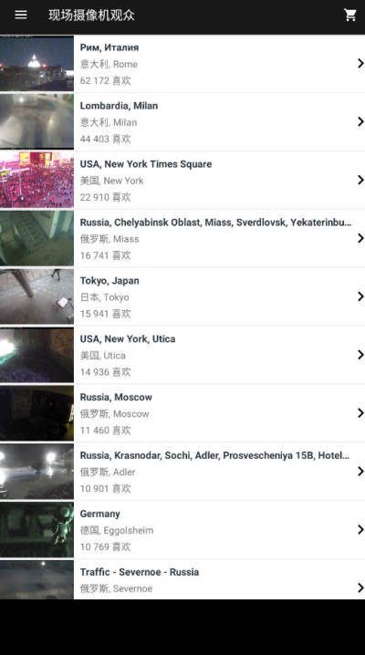 现场摄像机观众最新版是一款基于Android系统的全球公共实时视频流查看应用,覆盖全球超11,000个CCTV监控及网络摄像头,涵盖城市景观、自然景观、动物观察、交通枢纽等多元场景。用户可通过智能手机或平板电脑,随时随地探索世界、守护家庭安全,或满足个人兴趣需求。