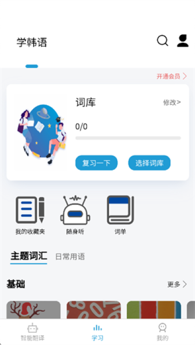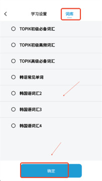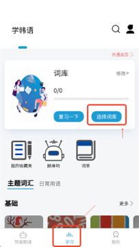 4、在学习板块点击选择词库选择单词表积习进行学习韩语单词