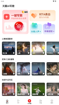 天籁AI写歌app最新版本是一款基于人工智能技术的音乐创作软件,软件融合了作词、作曲、编曲等多种功能,还能够智能分析歌词内容,精准匹配韵脚,使歌词创作更加流畅自然,依托强大的AI歌词语言模型,挖掘用户的潜在文采,帮助用户创作出更具创意和感染力的歌词,喜欢音乐创作的小伙伴快来试试吧!