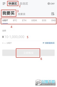 1. 打开欧容易usdt,点击页面下方法币按钮,即可进入法币交易区,选择快捷区,我要买,选择要购买的币种,输入需要购买的金额,或者要买的币种数量,点击立即购买。