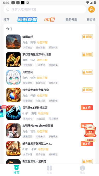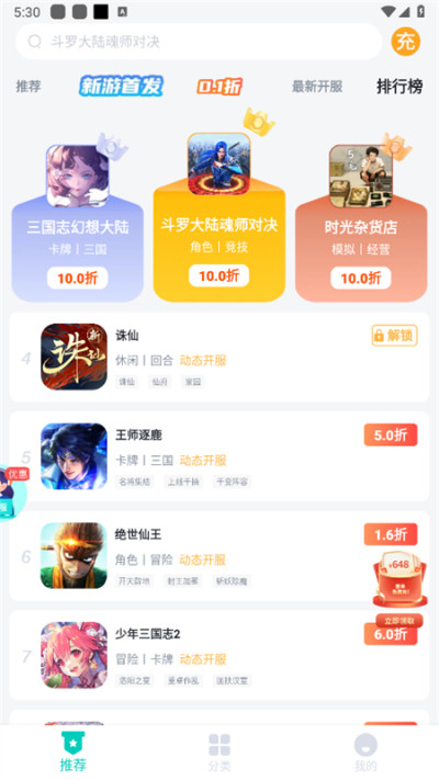 2、充值3折起:千款手游充值低至3折,超值折扣福利。