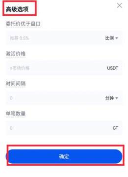 可以点击“高级选项”在下拉菜单中设置更多条件,“高级选项”设置完成后点击“确定”,然后点击“买入GT”即可。