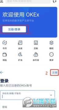 1. 打开欧易OKXAPP,点击页面上方登录/注册按钮,进入登录页面,点击右上角注册,进入注册页面。