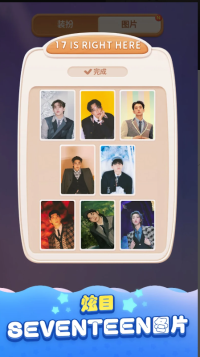 SEVENTEEN配配乐游戏安卓版是一款以韩国男团题材的官方三消休闲益智手游,游戏里结合经典消除玩法与SEVENTEEN的歌曲,还融入成员个性设定,采用强化学习AI优化游戏难度,使新手和资深玩家都能享受策略性消除乐趣,还可以自定义成员主题房间,收集舞台造型、应援棒等装饰,给玩家们带来更强的代入感!