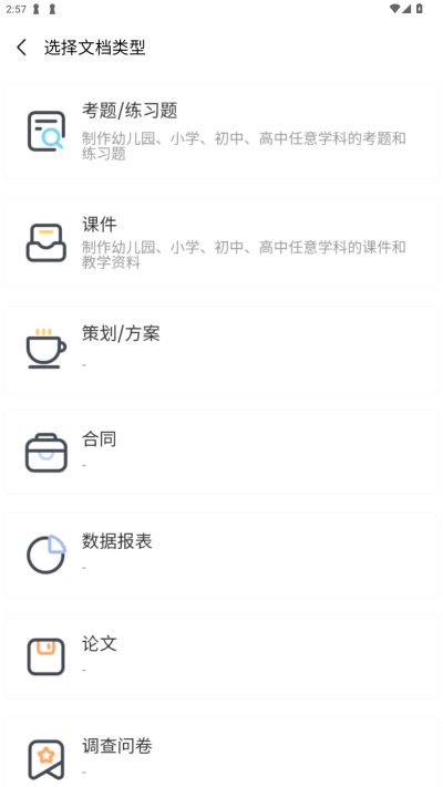 1、进入后可以先选择文档的类型。