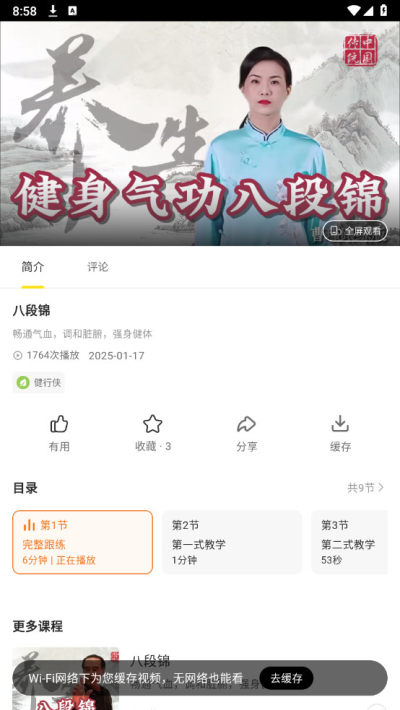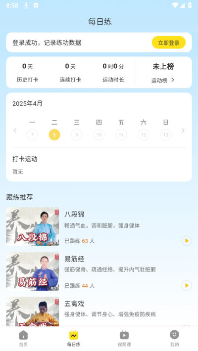 传统功法:提供学习传统养生功法的机会,帮助用户完成每日训练任务。