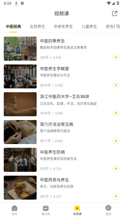 养生视频:丰富的养生视频课程,通过观看视频学习养生方法。