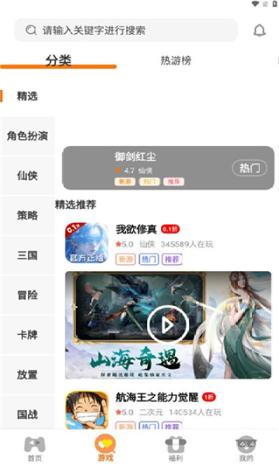1、通过分类去查找感兴趣的游戏,随时都可以直接一键去畅玩,玩游戏方式简单掌握。