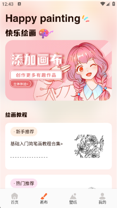 进入app,用户们直接点击画布页面的“添加画布”,新建一个新的画板