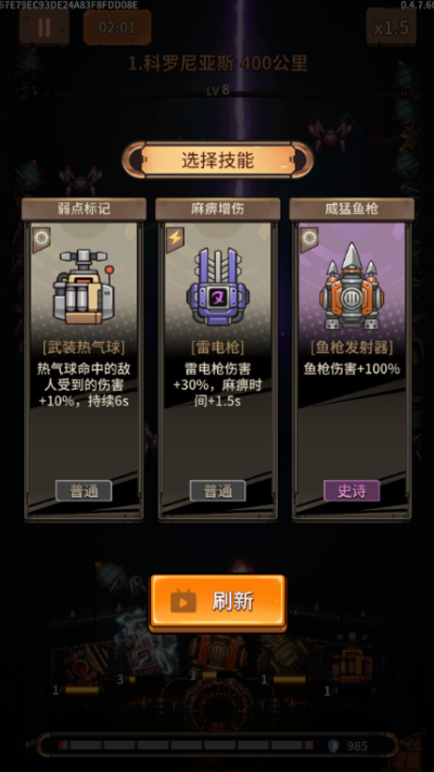 3.进度条满了之后就可以选择一个新炮台或者升级炮台,炮台最多设置五个。