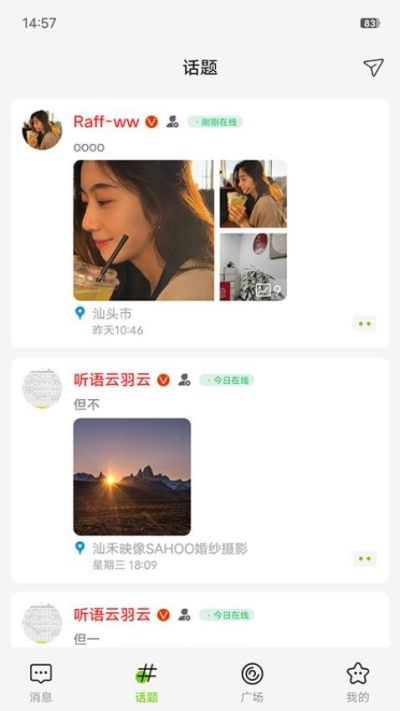 2、支持用户发布文字、图片或视频动态,展示个人生活,使社交更加生动有趣。