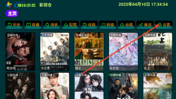 1、进入那抹湛蓝影视仓TV首页,点击设置