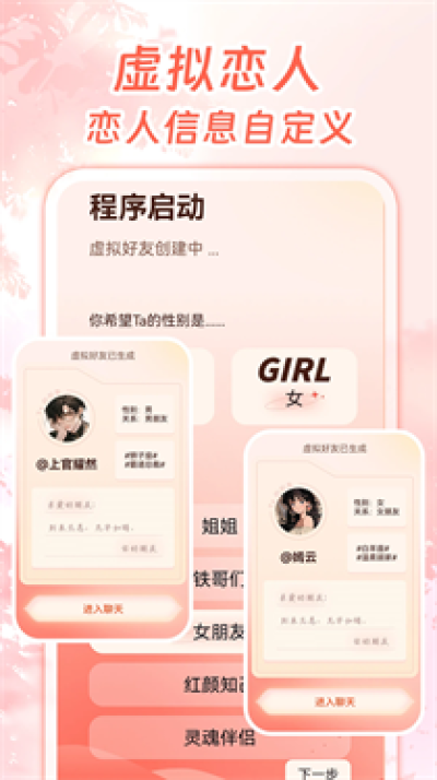 2、选择虚拟恋人,开启自己的甜蜜之旅