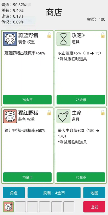 7. 商店补充装备:击败BOSS后解锁商店,可使用金币购买新装备或提升角色效果。