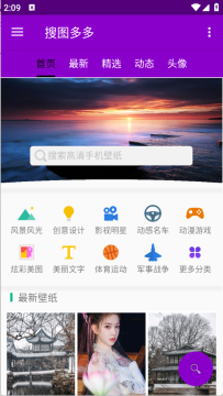 3、“精选”以及“最新”页面汇集了众多的壁纸资源。