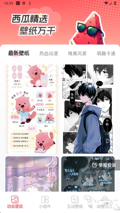 西瓜桌面壁纸app最新版是一款汇聚海量高清壁纸的桌面软件,多种风格的壁纸可以自由的筛选,可以根据手机型号自动适配,还有丰富的互动桌面插件可以自由的选择,打造属于自己的个性化的桌面,软件每天都会进行壁纸的更新,让用户每天都拥有不一样的体验!