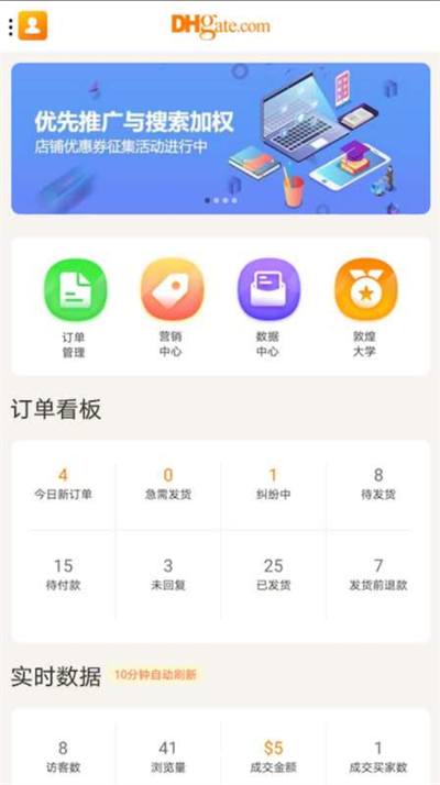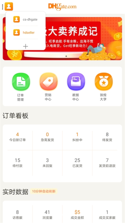 dhgate一站式跨境平台全球领先的跨境出口平台,现已汇聚海量优质供应商,深度连接全球5960万海外采购商。平台提供多元化物流解决方案、全场景支付体系及专业运营团队全程护航,助力商户实现店铺智能化管理,省心省力开启全球生意。诚邀各界用户即刻下载体验!