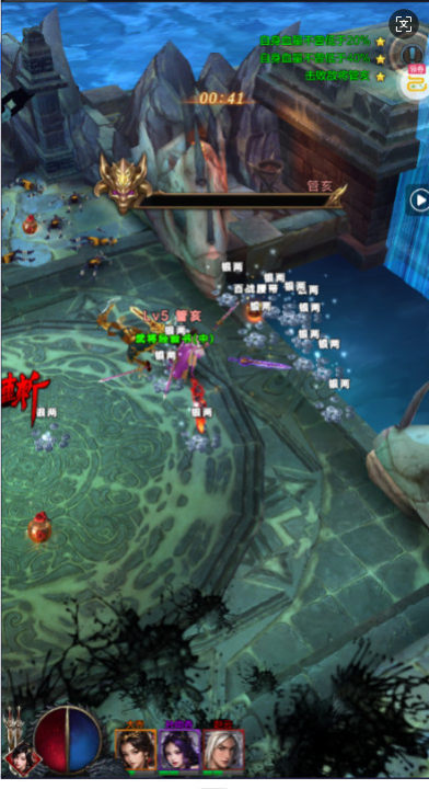 半自动战斗:点击右下角双剑图标即可半自动战斗、攻击敌人但不会自动释放武将技能。