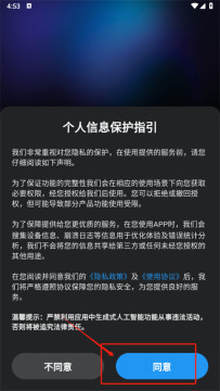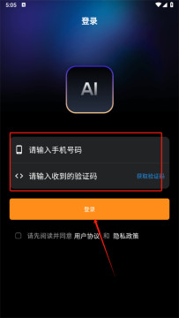 2、同意隐私政策和使用协议后进入登录页面