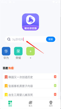 智能搜索栏:支持直接搜索、网址输入,并提供热门推荐,快速找到所需内容。