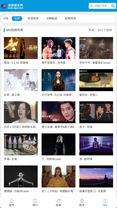 1、启动软件,点击底部“MV”选项,即可浏览众多视频列表;