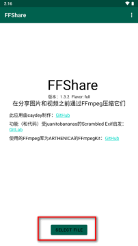 2、启动软件后,点击下方“select file”按钮,以选取待压缩的图片或视频。