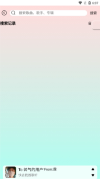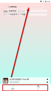 1、yulinlin音乐页面展示部分极为简单,分为【首页】、【我的】两部分,这里我们需要点击上方的搜索歌曲查看播放源。