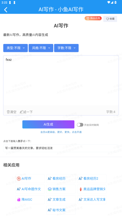 用户只需输入关键词或主题,App即可快速生成高质量内容,满足不同场景需求。