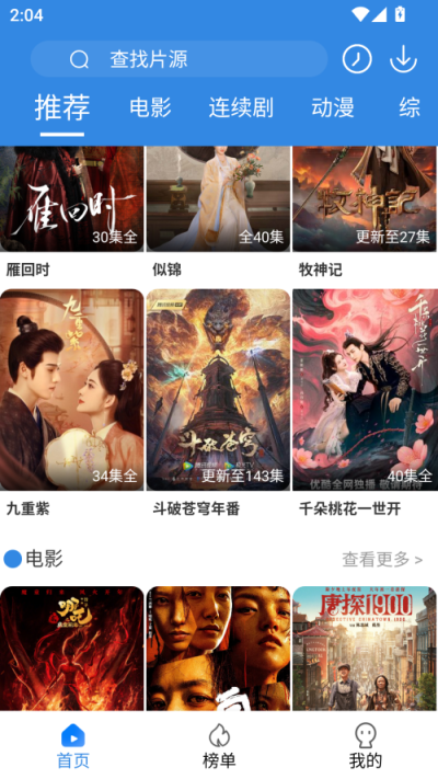 1、软件首页拥有不同种类的视频推荐,包括电影、连续剧、动漫、综艺,大家可以按照自己喜欢的视频类型进行查找。