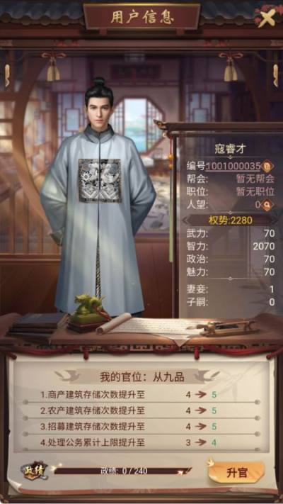 势力经营网络:通过联姻、拜师等方式拉拢六部势力,吏部尚书可加快晋升速度,户部关系提升税收收益。