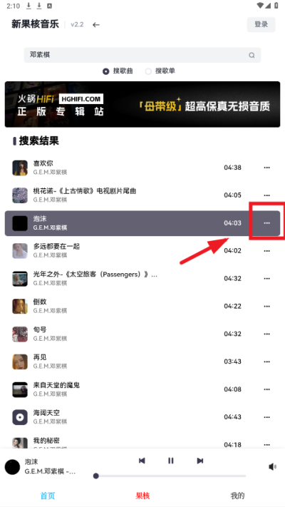 还可以点击歌曲后方的三点