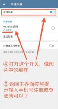 4.打开使用代理的选项,然后点击连上了。
