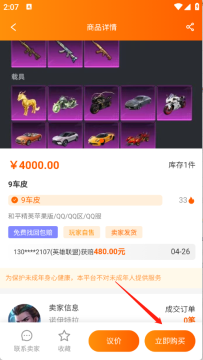 4、点击喜欢的游戏账号之后点击“立即购买”即可。