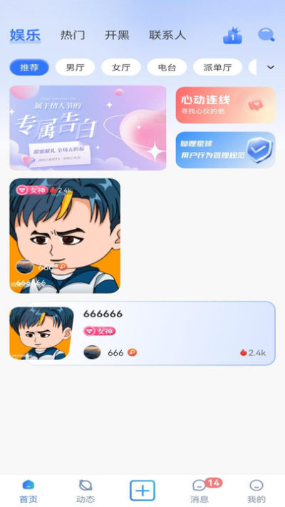 呦哩星球app是一款安卓手机免费社交软件,软件中有着海量的趣味玩法等你体验,用户可以在这里快速加入语音聊天房,心动连线寻找心仪的她,还有超多交友活动玩法等你参与,对软件感兴趣的话不妨点击下载试试!