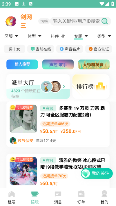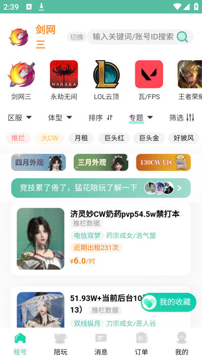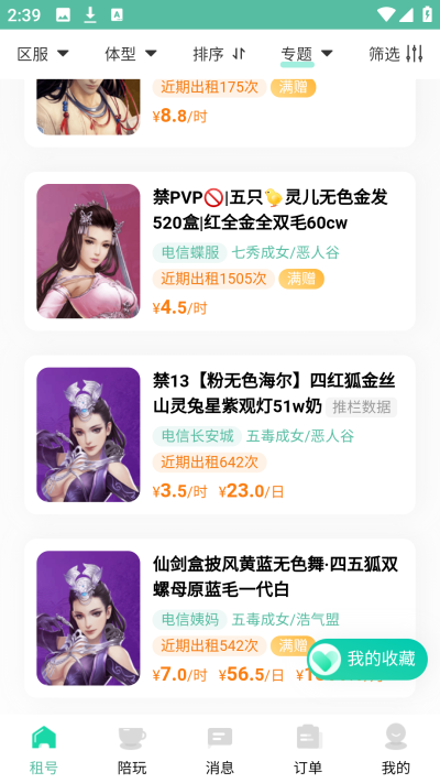猛花租号app是一款安卓手机游戏账号租赁陪玩平台,平台中有着海量的高品质账号等你体验,用户可以自定义筛选区服、体型等等,还可以寻找大神选手陪你一起打游戏!对软件感兴趣的话不妨点击下载试试!