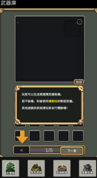 5、进入武器库之后可以选择装备武器,若不装备武器则默认使用烂树枝武器