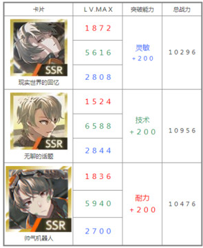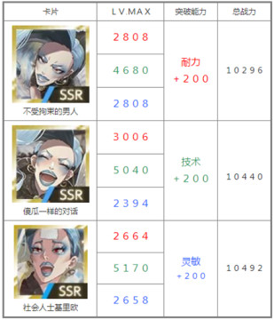 每张SSR卡突破后,其数值加成会同步应用于同角色的所有卡牌(R/SR/SSR),增强整体强度。