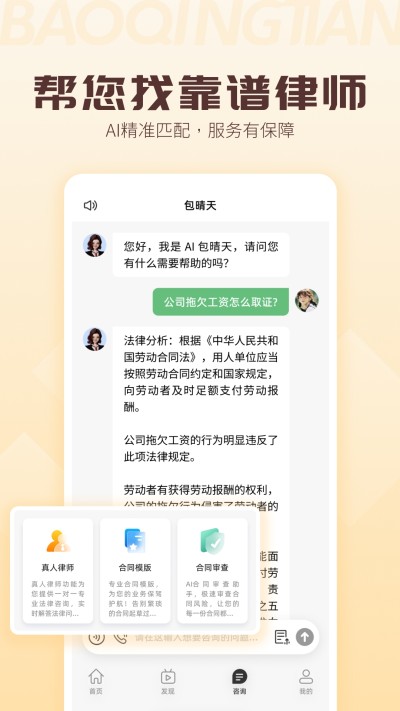 无论是邻里纠纷、消费维权还是商业合同、企业合规,“包晴天”一应俱全,满足个人与企业的多样化法律需求。