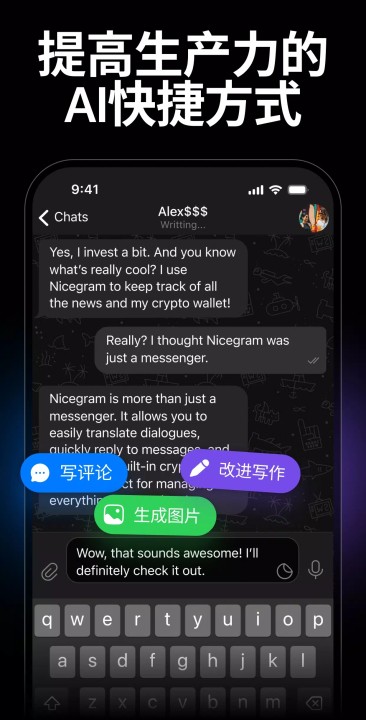 Nicegram是一个替代的Telegram客户端,配备了一系列创新的AI驱动功能,用于提升您的日常通信。