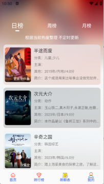 3、排行榜栏目将影视根据当前热度实时整理排序。