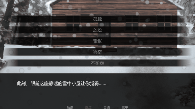 是时候来一场冬日逃离之旅啦~一场突如其来的暴风雪,让你意外地误入了一座山间小屋。原本计划中的宁静冬日休憩,意外地演变成了一场充满未知的冒险。当你邂逅那位神秘的小屋主人时,原本打算独处的旅行计划出现了有趣的转折。随着暴风雪愈发猛烈,你们二人不得不一同被困在这小小的屋檐之下。在这片被白雪覆盖的森林里,究竟隐藏着怎样的秘密?而你的每一个选择,都将决定你在这部视觉小说中的命运走向。